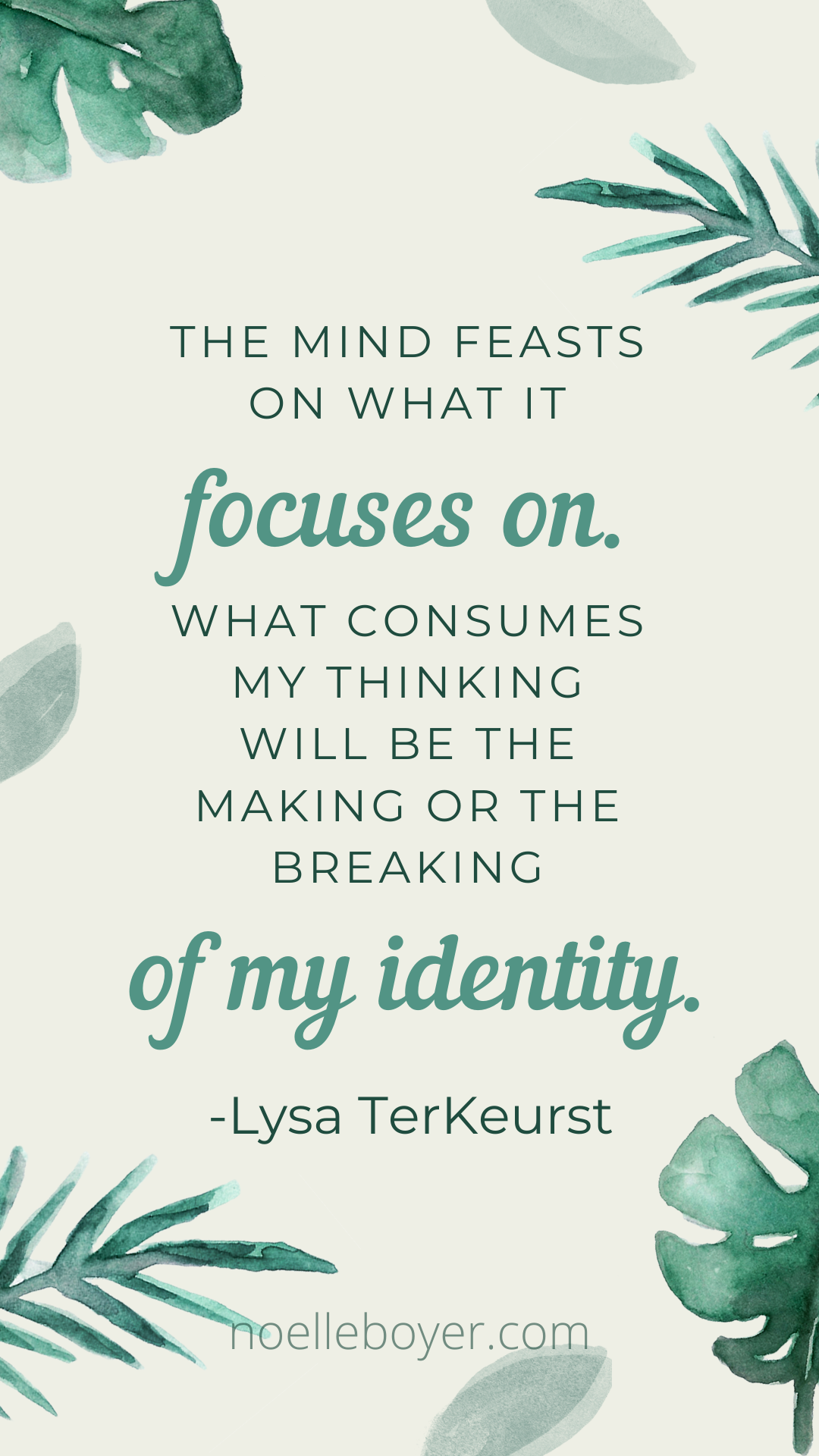 Chapter 12, “The Enemy’s Plan Against You” Lysa shares about her sudden experience with lions on a trip to Africa. Her thoughts were consumed with fear, that eventually came to life when lions entered the “safe” camp she resided. She writes, “I wrestled with that lion. And lost. Because I let him get the best of my thoughts.” She goes on further to write, “You don’t have to go to Africa to get stalked by a lion.” Satan is “coming after your mind” and “looking to devour you.” Talk about a freaky image but if you’re a believer, you know this is a true one. There is hope to the Devil’s obsession with destroying us…it’s that he is predictable. “Lies flee in the presence of truth,” and we are equip with God’s truth as defense.
