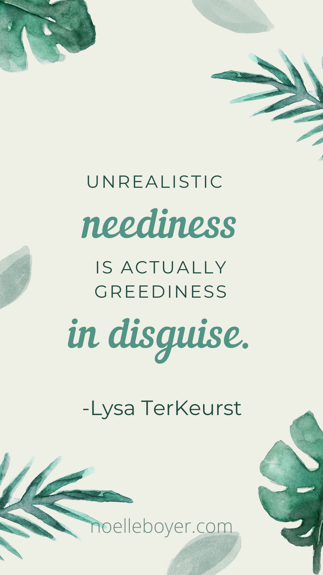 In this chapter, Lysa talks about loneliness. It’s a feeling I toggle with often with being a military spouse and mother with young children. I am guilty of putting high expectations on my husband to meet the needs I feel lacking in my daily routine. I also can relate with the feeling of being lonely in a crowded room because I don’t like putting expectations on friends and feeling disappointed when they reveal their human limitations to me. I try to be the person, others need and then walk away feeling empty because I’ve given too much of myself. The biggest takeaway from this chapter for me, is that we need to “grasp the full love of Christ” so we won’t “grab at other things to fill us.” She goes on to say that if we do this, “we’ll feel a prick in our spirit when our flesh makes frenzied swipes at happiness, compromising clutches for attention, paranoid assumptions with no facts, joyless attempts to one-up another, and small-minded statements of pride.”